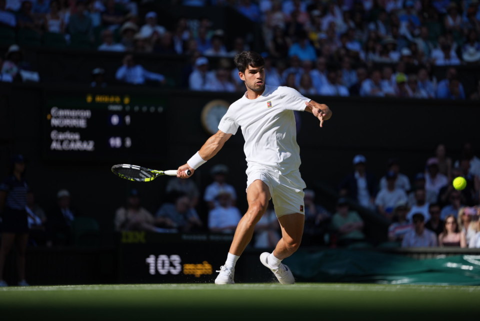 阿爾卡拉斯八強戰的對手是本土作戰的諾里。比賽中阿爾卡拉斯幾乎沒有給對手任何機會,直落三盤6-2/6-3/6-3輕松勝出。獲勝的阿爾卡拉斯取得了溫網19連勝和巡回賽23連勝,連續3年在溫網闖入四強。