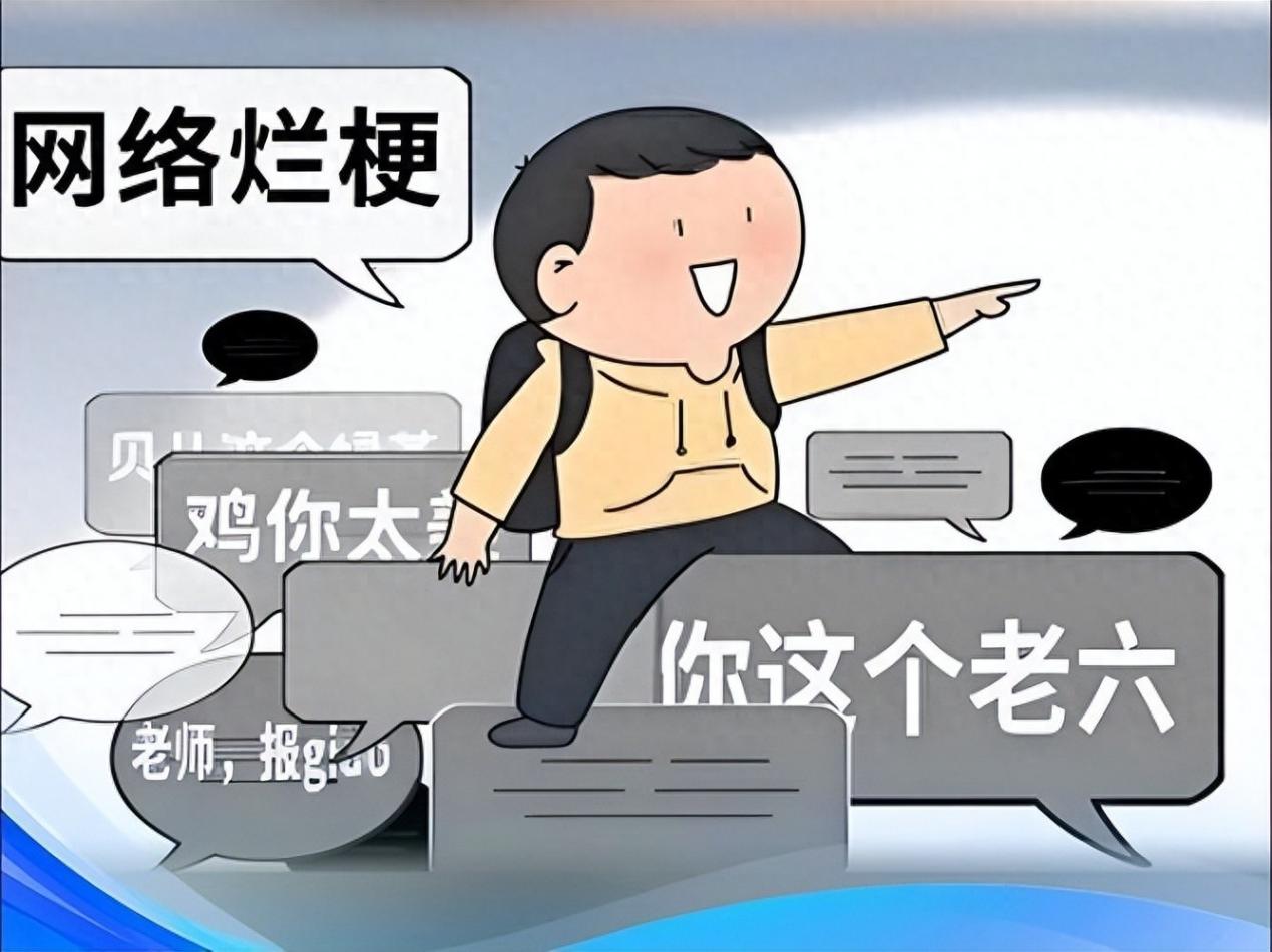 當前,網絡用語呈現“野蠻生長”態勢。據調查,超60%的未成年人日常交流頻繁使用“老六”“栓Q”等黑話,部分學生甚至將其寫入作文。此類表達往往語義模糊、邏輯混亂,如“梭哈”等游戲術語被強行泛化,導致溝通效率下降。更值得警惕的是,一些爛梗隱含暴力、歧視等價值觀,例如“老師來了怎么辦,拿起XX跟他干”等順口溜,以戲謔形式傳播不良行為誘導。