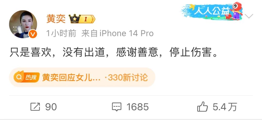 4日晚18:28,黃奕在微博提到:只是喜歡,沒有出道,感謝善意,停止傷害。