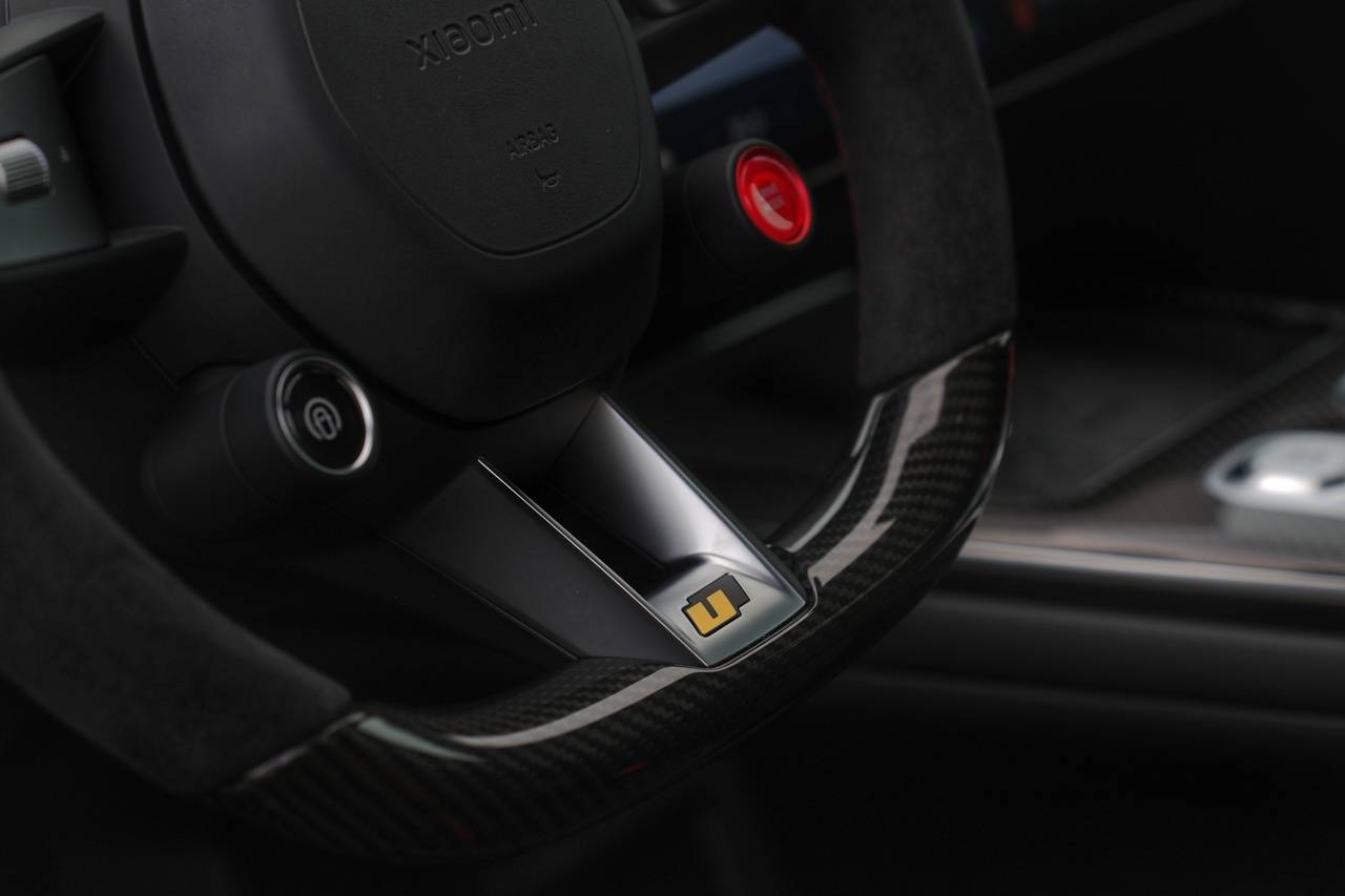 拉開車門,第一眼不會特別驚艷,更像是傳統性能車與高端新能源車的中間態。SU7 Ultra的內飾氛圍不會給到人“哇偶”的贊嘆,但當你細看,那明顯與標準版不同的方向盤,粗壯,緊實。Alcantara下包裹著的,是厚實的碳纖維骨架,光是握著它,熱愛駕駛的你內心就會升騰起一股力量,一股想要駕駛它、操控它的原始欲望。更何況那紅色的醒目的Boost就在那邊誘惑著你。