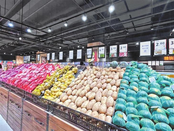 圖② 鄭州一家永輝超市,各類蔬菜在貨架上井然有序。