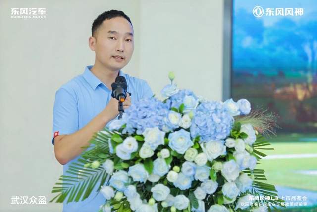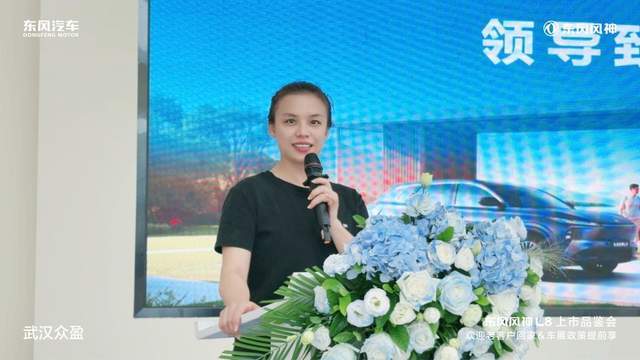 緊接著,東風風神武漢眾盈4S店總經理胡盼盼女士上臺致辭。領導首先對大家的到來表示誠摯感謝,隨后闡述了東風風神品牌的發展理念與愿景,強調L8系列車型對于品牌的重要意義,同時也表達了對廣大用戶支持的感恩之情,以及為用戶帶來更優質產品與服務的決心。
